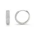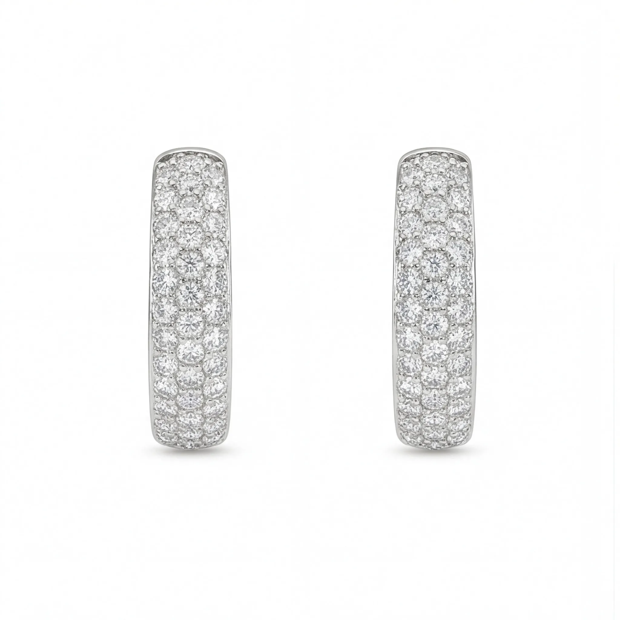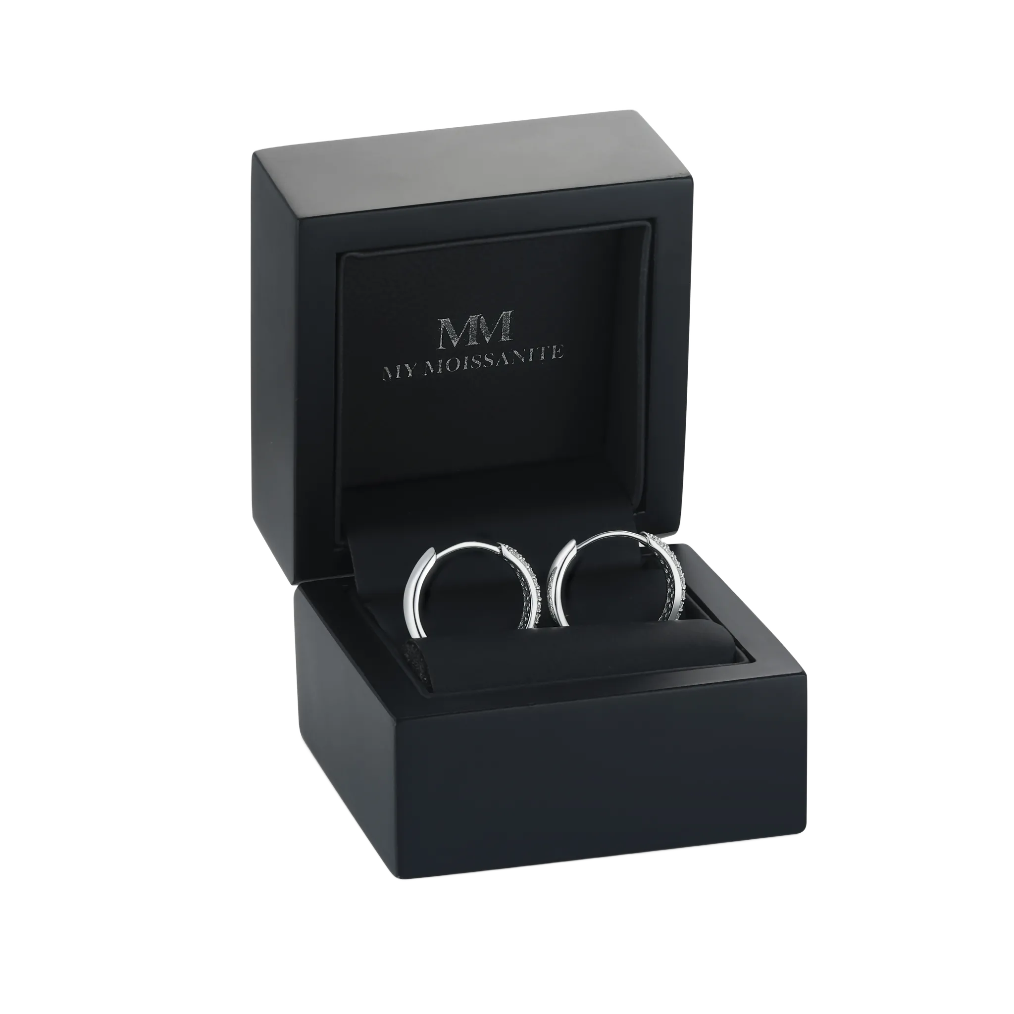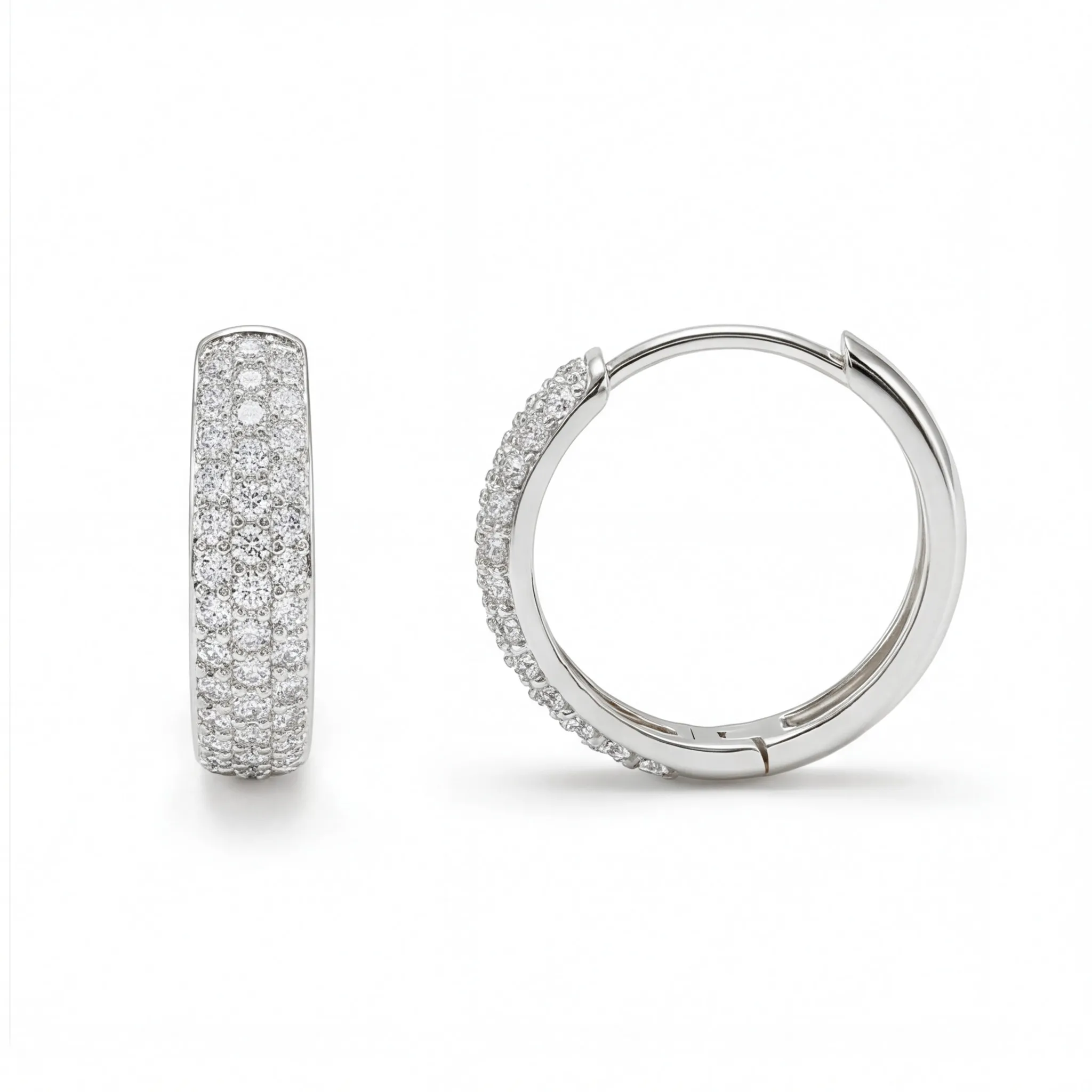 The Glintique huggie hoop earrings feature sparkling round-cut moissanite stones, pavé set to create a dazzling display on the front face of the design. With a luxurious width of 5mm, these earrings offer a sophisticated and elegant look. Featuring a secure hinged closure, the Glintique earrings ensure both comfort and style for any occasion.