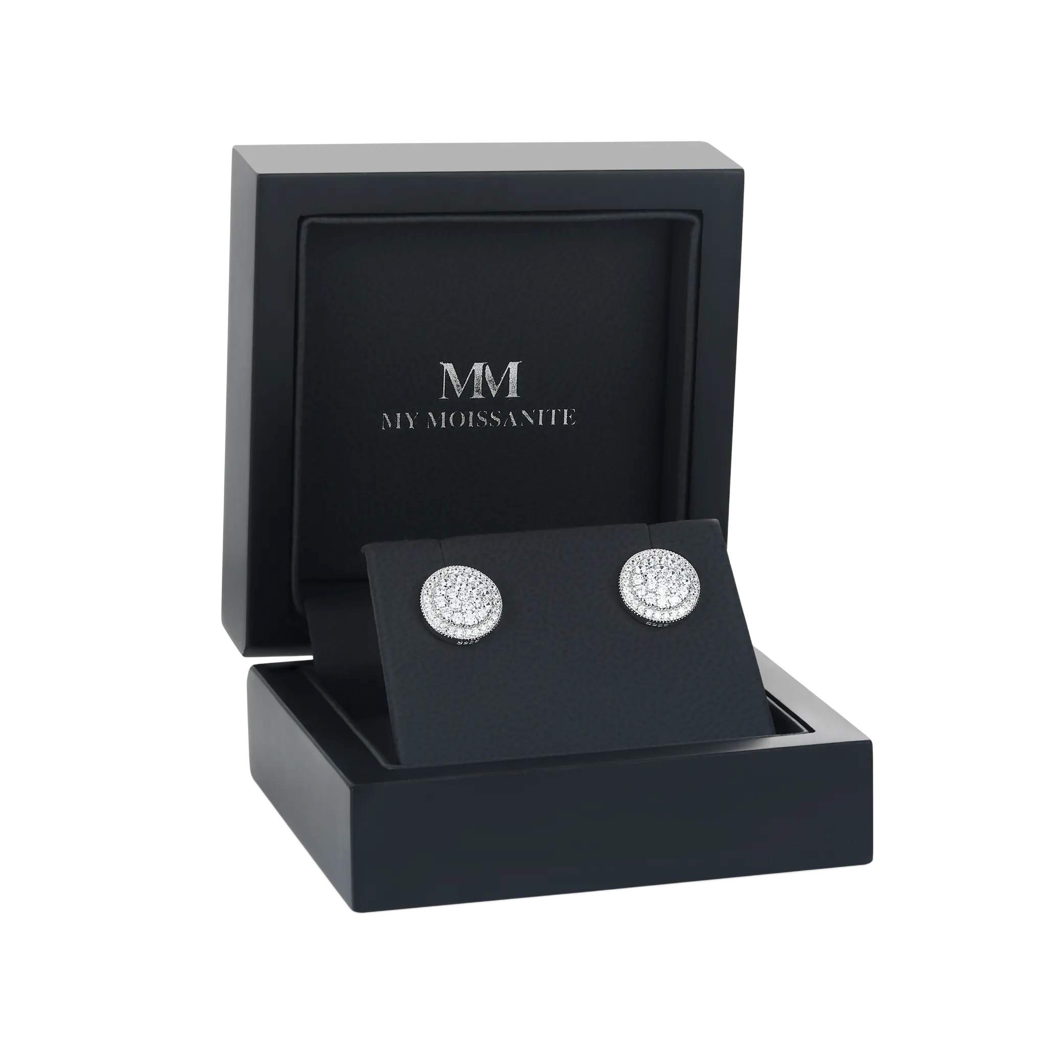 Our cluster earrings, uniting a collection of moissanite stones in one setting, offer a harmonious design that's striking and sophisticated. Symbolizing unity, they're perfect to celebrate a special bond or to elevate your jewelry collection. These round cluster earrings are versatile for any occasion, adding a touch of elegance to your ensemble.