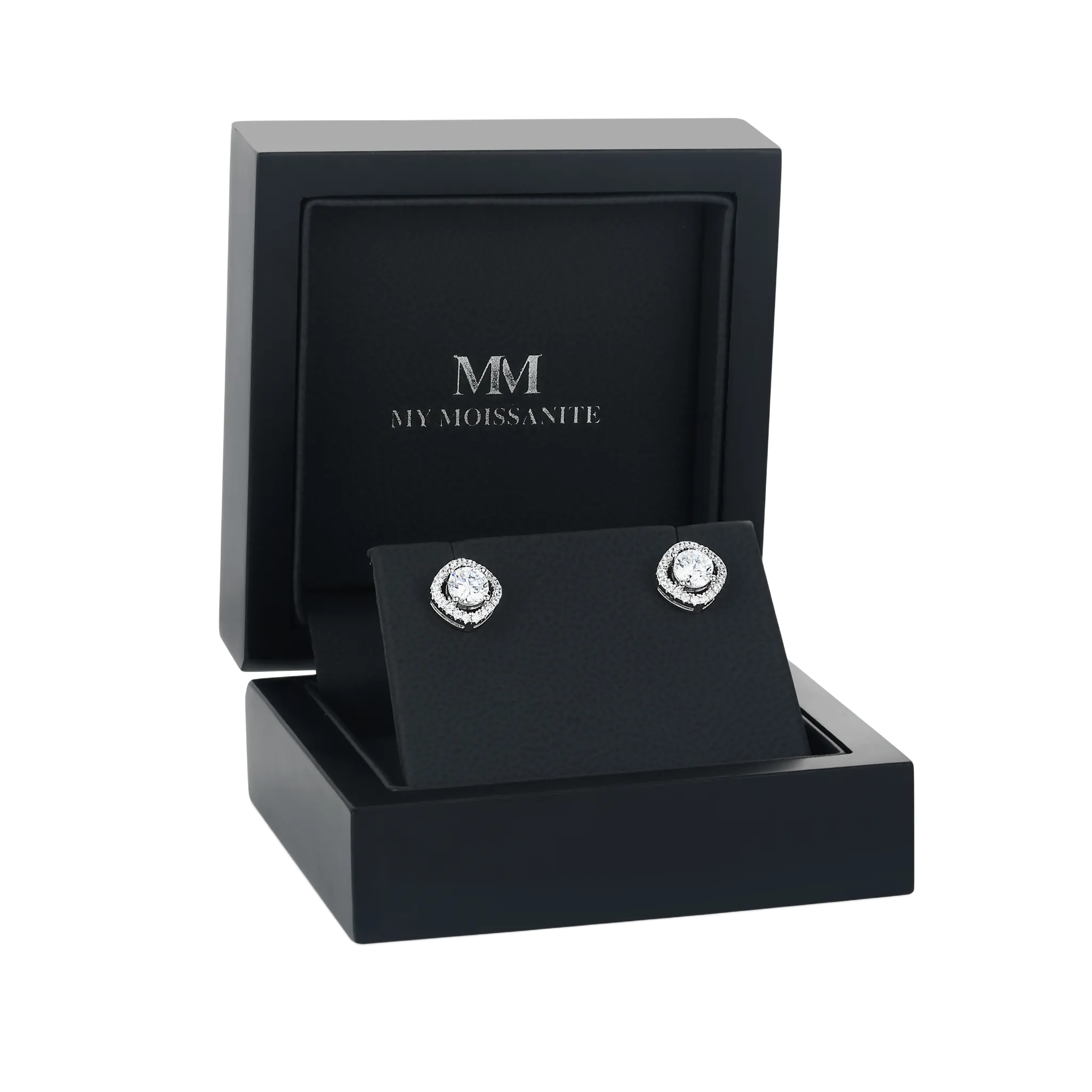 Make a remarkable impression with these Spaced Halo earrings from My Moissanite. These 1.24 total carat weight earrings feature a unique, unconventional spaced halo setting, exuding refinement and elegance.