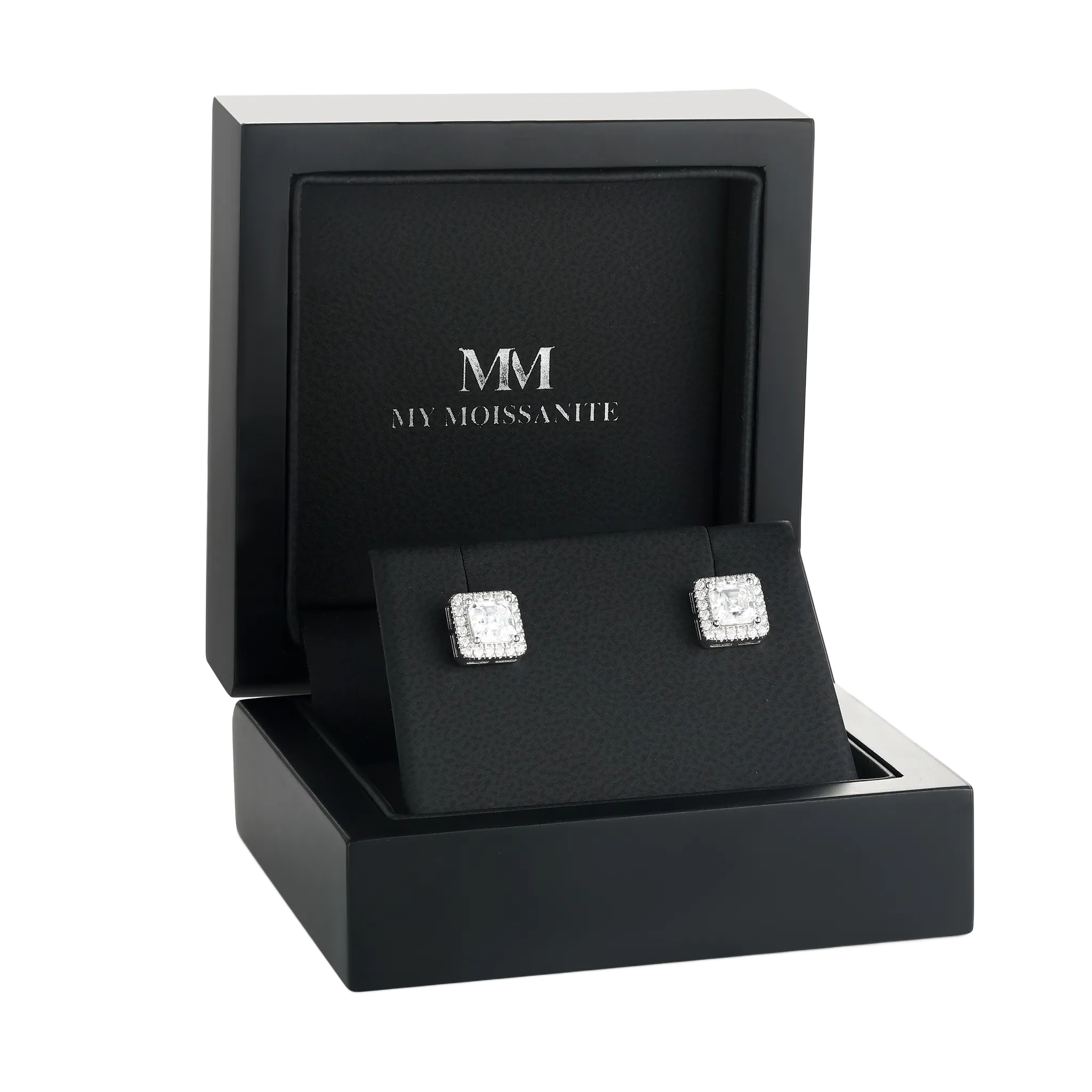 Tetrona - Asscher Moissanite Stud Earrings in Halo Setting