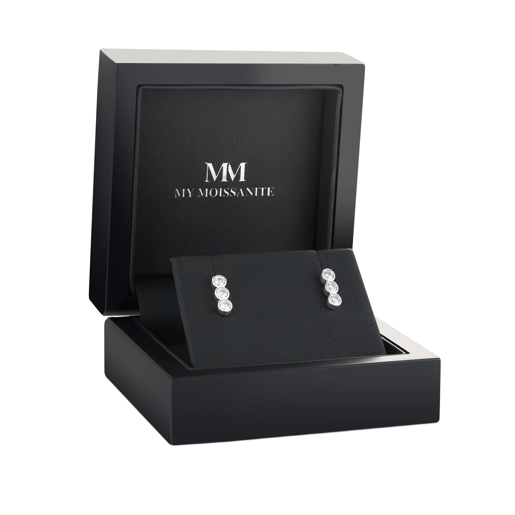 Our tri-bezel moissanite earrings are the ultimate embodiment of sophistication and elegance. The sparkling 0.1 carat moissanite stones are set in a unique and innovative design that exudes class. The bezel setting adds an extra touch of refinement, making these earrings the ideal finishing touch for any stylish outfit.