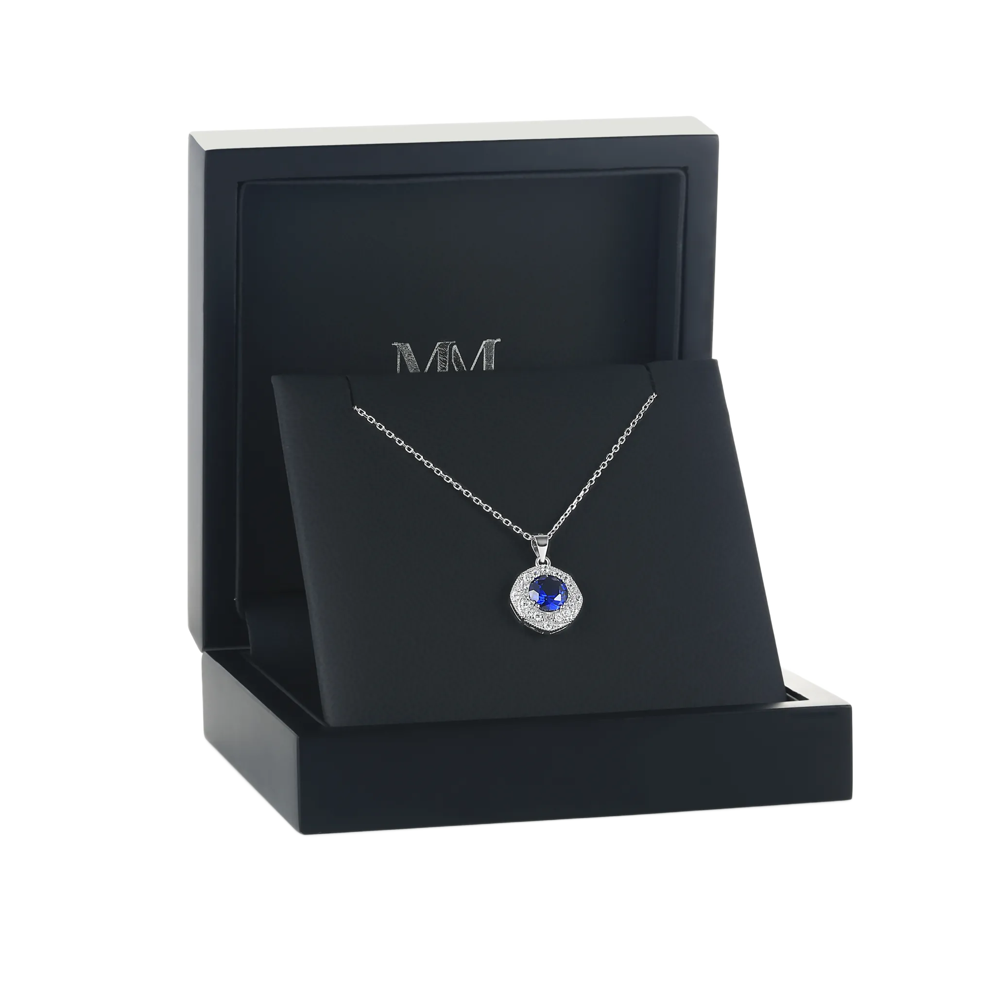Introducing the Purelle, a pendant necklace that captivates with its royal blue moissanite centerpiece, encased in a halo of brilliant round-cut moissanite stones. Each moissanite is meticulously set, with the central stone held securely in prong settings and the halo stones closely arranged for an endless sparkle. This exquisite piece is complemented by a classic link chain, enhancing its elegance. The natural occurrence of the royal blue moissanite guarantees its color remains vibrant and true, making the Purelle a timeless treasure.