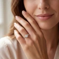 The ring is masterfully crafted, displaying a harmonious fusion of modern minimalism and timeless elegance. Every curve, every facet is thoughtfully designed to present a piece that not only graces the hand but also resonates with the heart.