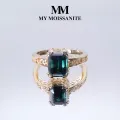 The Verdisia engagement ring showcases a stunning green moissanite, accentuated by an emerald-cut center stone set in an intricate four-prong setting. Delicate floral motifs adorn the shoulders, seamlessly transitioning from the center to the rest of the ring, adding a vintage-inspired elegance. From a side view, the ring features a modest setting height, emphasizing the center stone while maintaining a sophisticated profile. This beautiful combination of floral detailing and craftsmanship makes the Verdisia a timeless choice for a moissanite engagement ring that exudes sophistication.